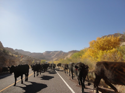 Not a sight you see in New Jersey! Tourists, not cowboys, seemed to be helping out drive this cattle herd.